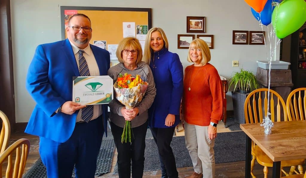 The Emerald Leader Award is given annually to an individual, business, and/or nonprofit agency that exemplifies outstanding leadership by positive contributions to Geauga County through volunteer service, philanthropy, or innovation.