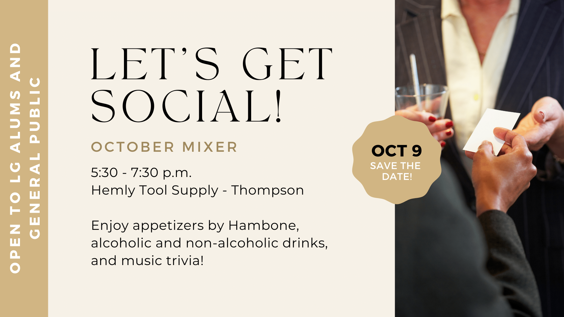 Join Leadership Geauga for our Fall Mixer on Wednesday, October 9, from 5:30 to 7:30 p.m. at Hemly Tool in Thompson! For just $20 per person, enjoy appetizers, drinks (both alcoholic and non-alcoholic), and a lively music trivia session from 6:30 to 7:30 p.m. Come early to explore Hemly Tool’s store, featuring a wide selection of hardware, gifts, yard items, clothing, and more. Don’t miss this opportunity to connect with fellow alumni and community members in a fun and relaxed setting!